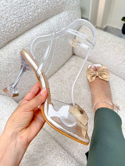 Tacón transparente con moño, altura 7 cm
