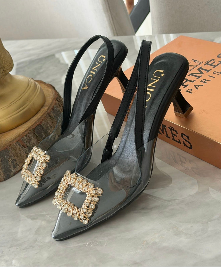 Stilettos de charol, chic buckle