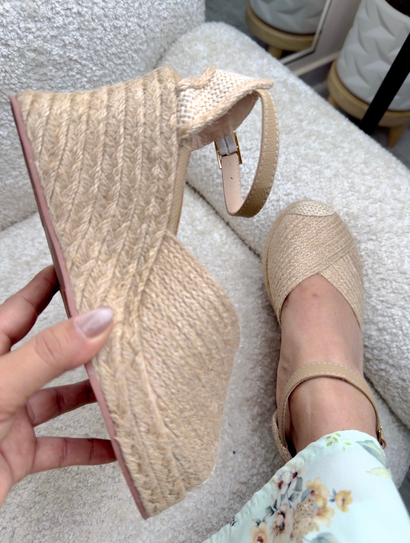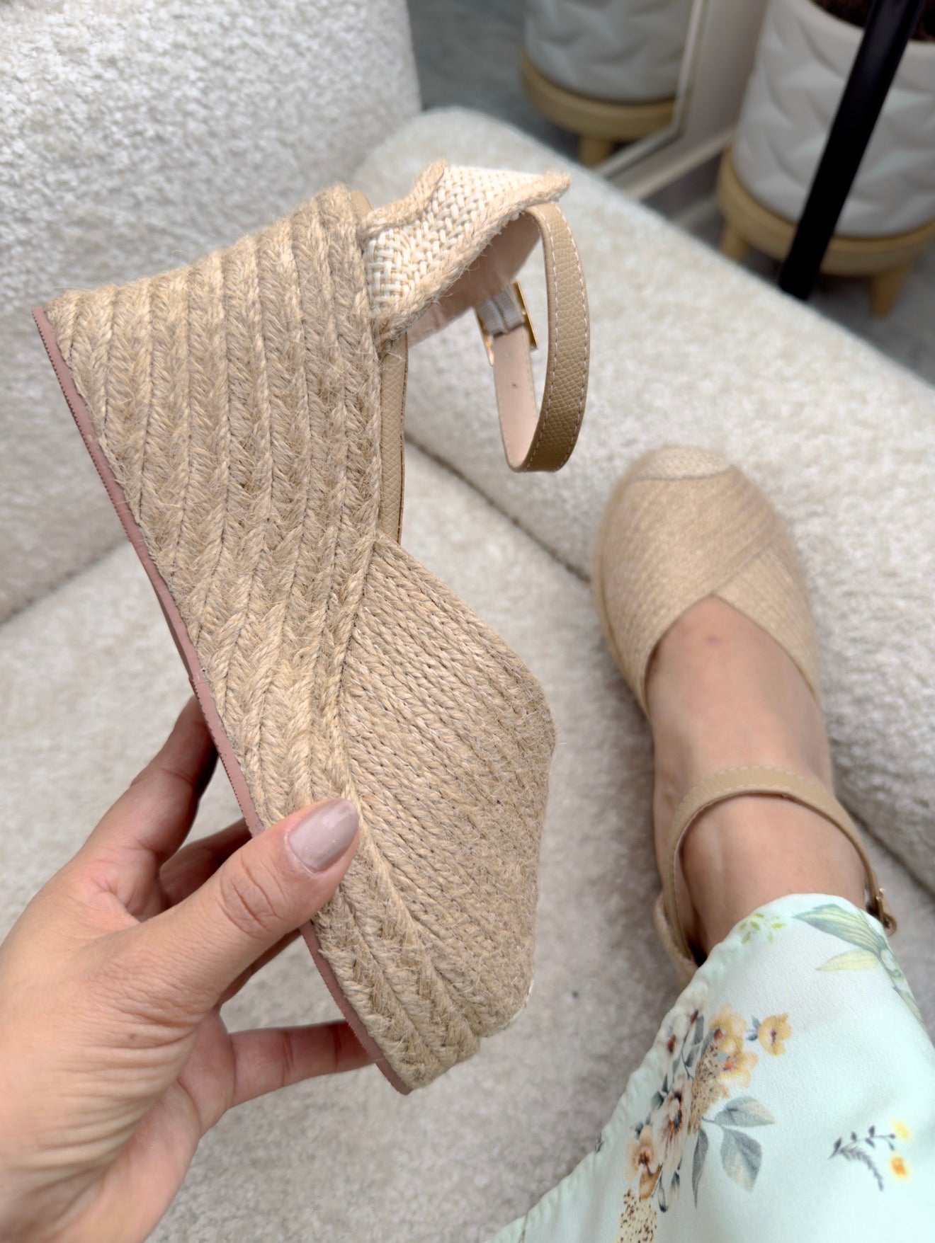 La plataforma en yute estiliza tu figura mientras mantiene una pisada firme y estable, ideal para caminar con confianza durante todo el día. Su pulsera ajustable al tobillo aporta soporte adicional y un toque delicado que realza cualquier look.