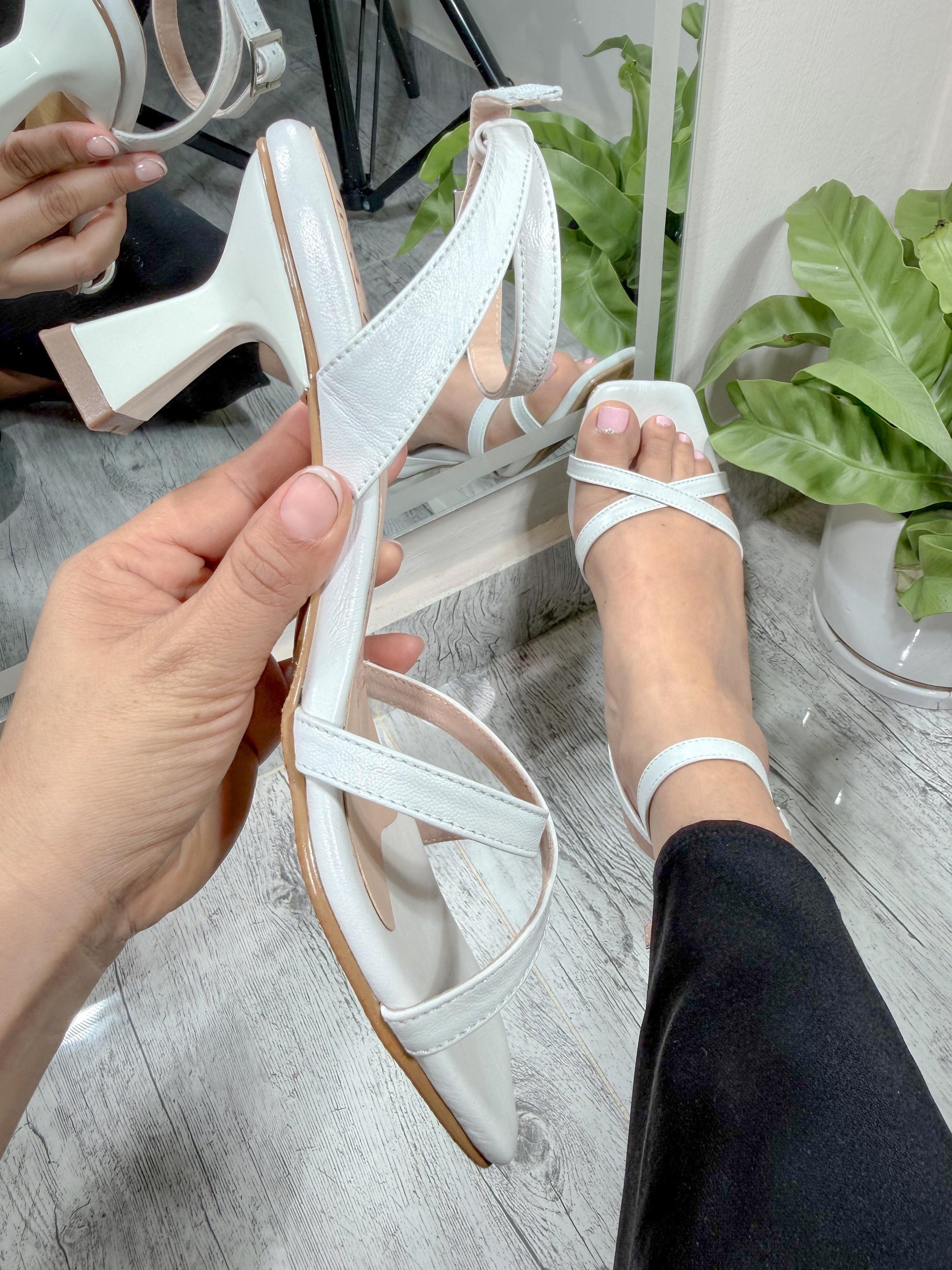 Nuestra sandalia blanca es la definición de versatilidad y lujo artesanal. Confeccionada meticulosamente en cuero de alta calidad, este par ha sido diseñado para la mujer que busca destacar sin sacrificar la comodidad de sus pies.