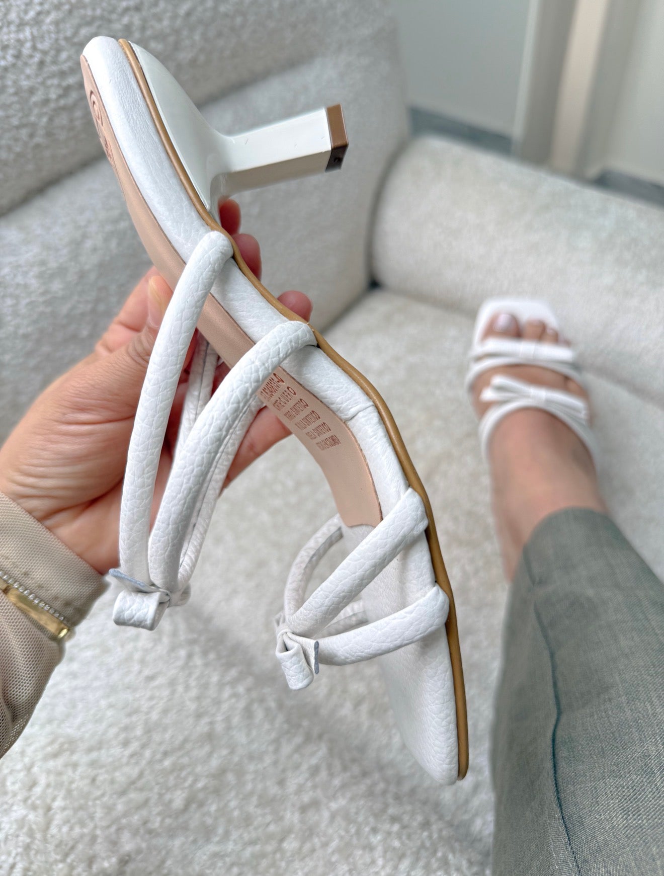 Delicada, femenina y absolutamente sofisticada. Esta sandalia en cuero tono talco está diseñada para realzar tu estilo con sutileza y clase. Su diseño destalonado aporta ligereza y frescura, mientras que sus cuatro tirillas sobre el empeine, dispuestas en pares y adornadas con dos lacitos decorativos, crean un detalle romántico y encantador que enamora a primera vista.